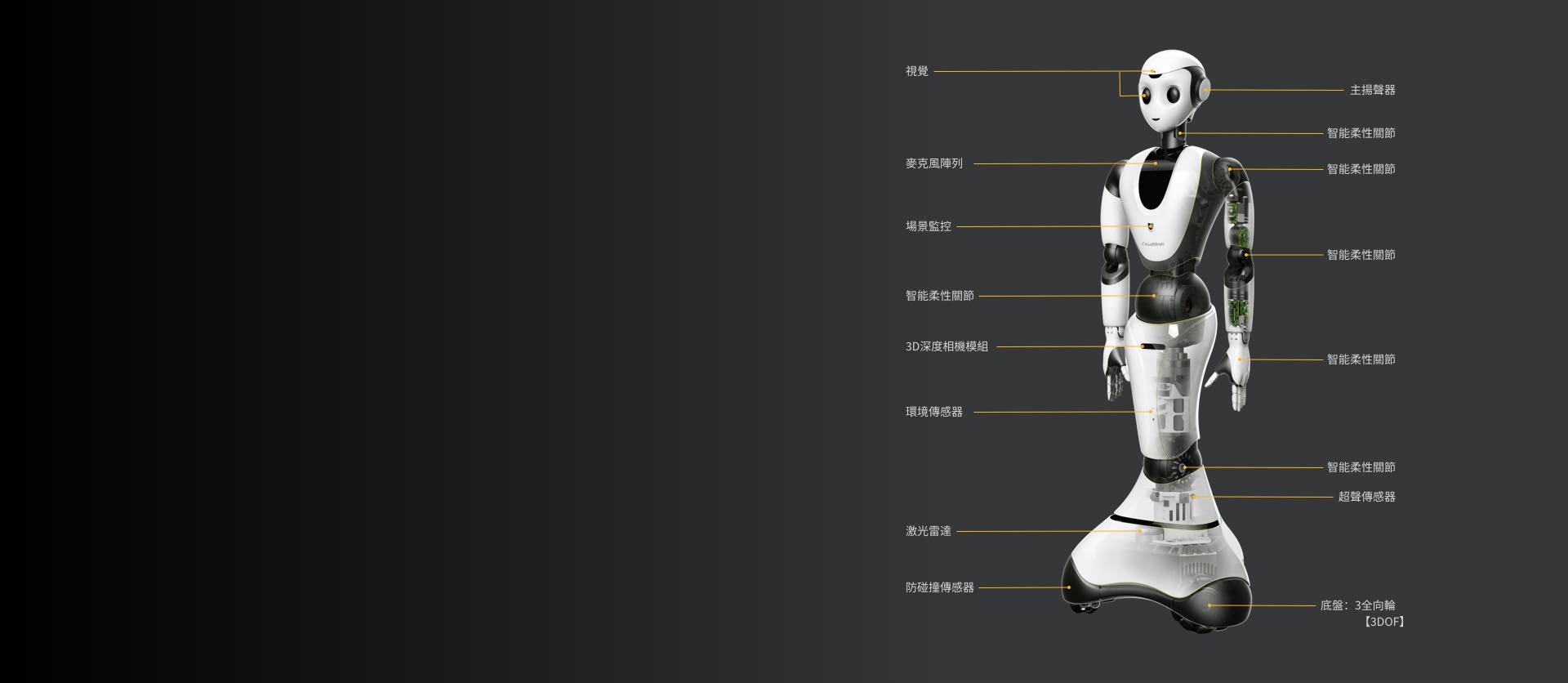 能歌善舞、智能抓取、自主行走、自動避障、自動平衡。